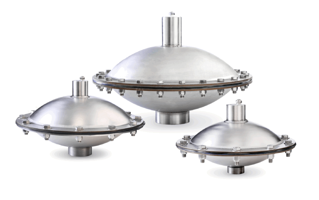 この製品はステンレス製のため薬品を含めた多く流体に対応可能で、圧力変動を低減し、ウォーターハンマーや有害な振動を防止することで、流体輸送の安定化と配管・バルブ・計測機器の保護に貢献します。